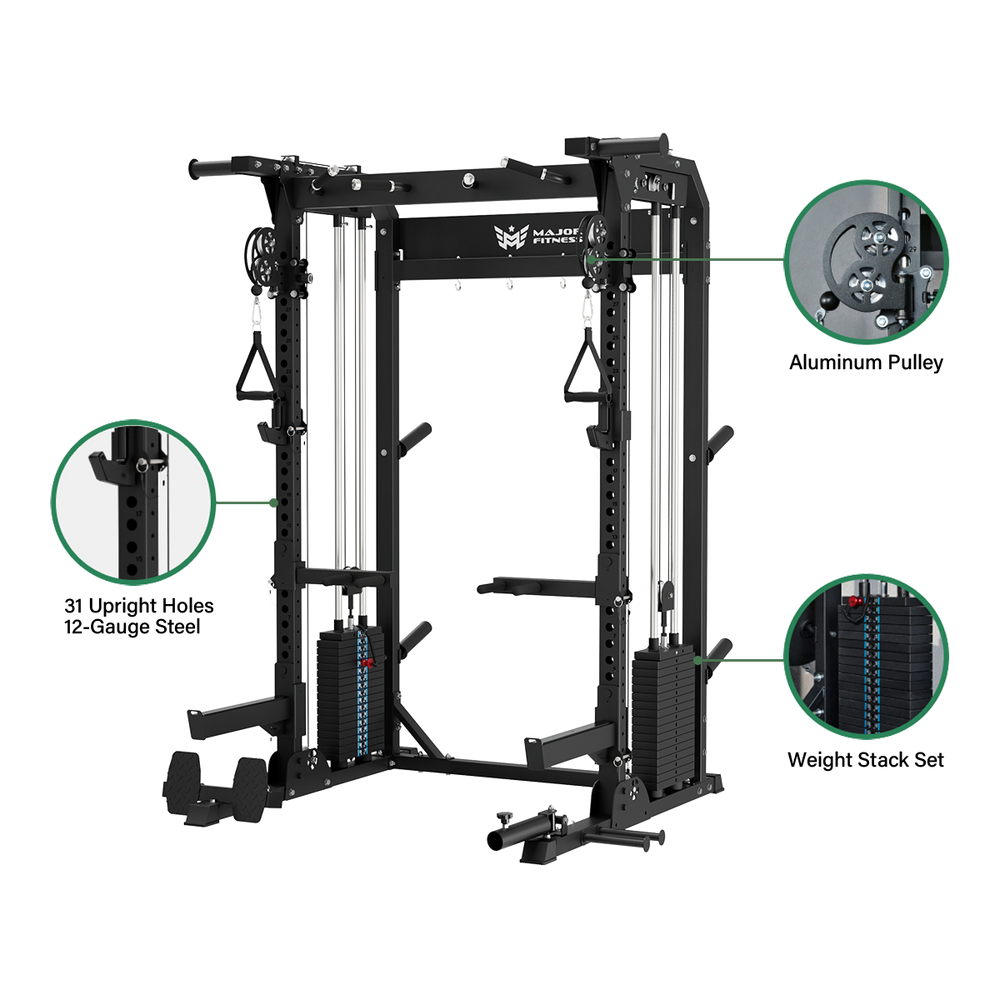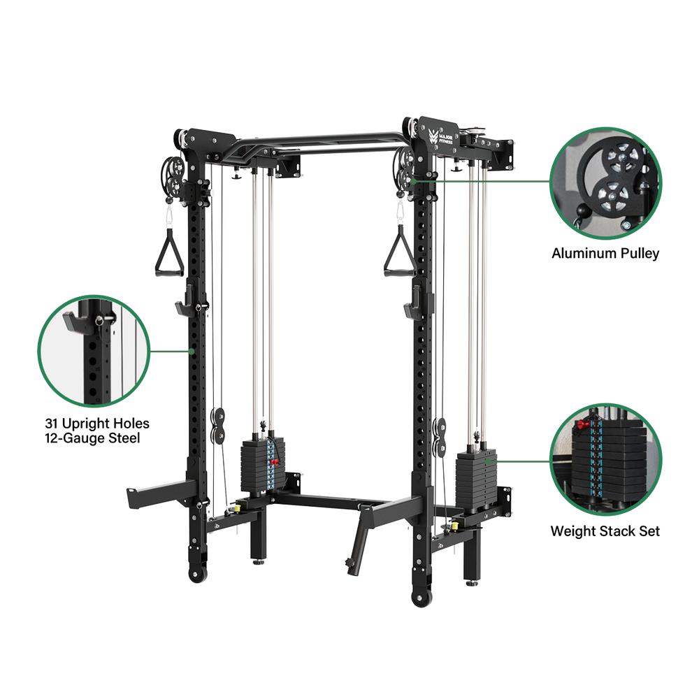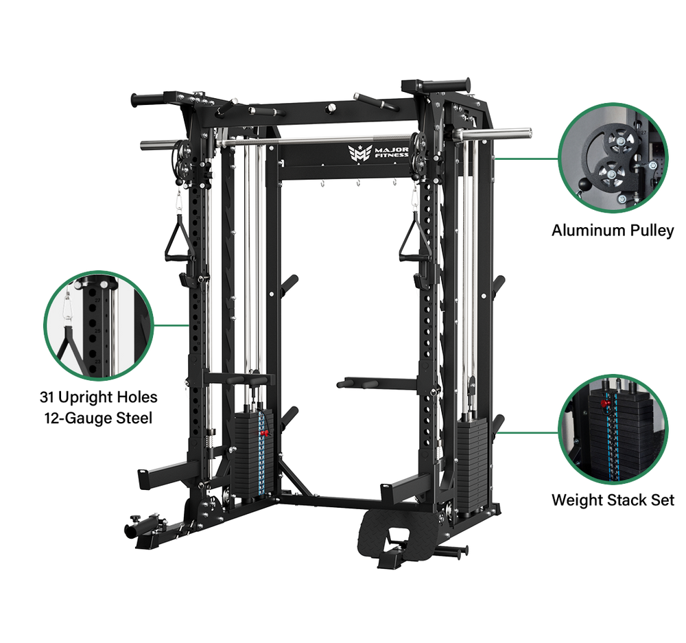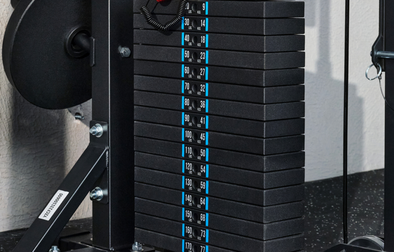 Bring commercial-level resistance and control to your home gym with built-in plate-loaded stacks that support 260 lbs per side.