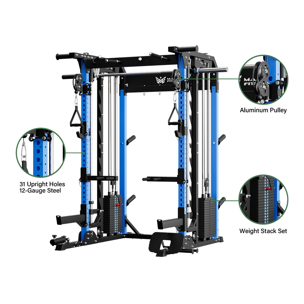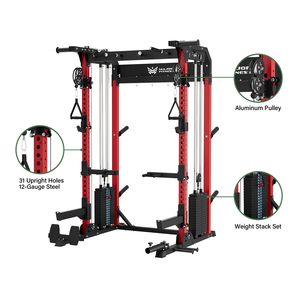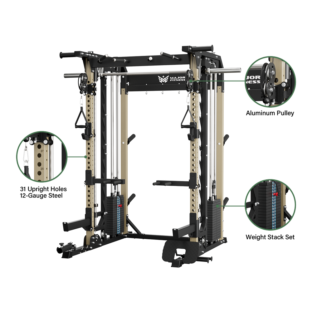 Bring commercial-level resistance and control to your home gym with built-in plate-loaded stacks that support 260 lbs per side.