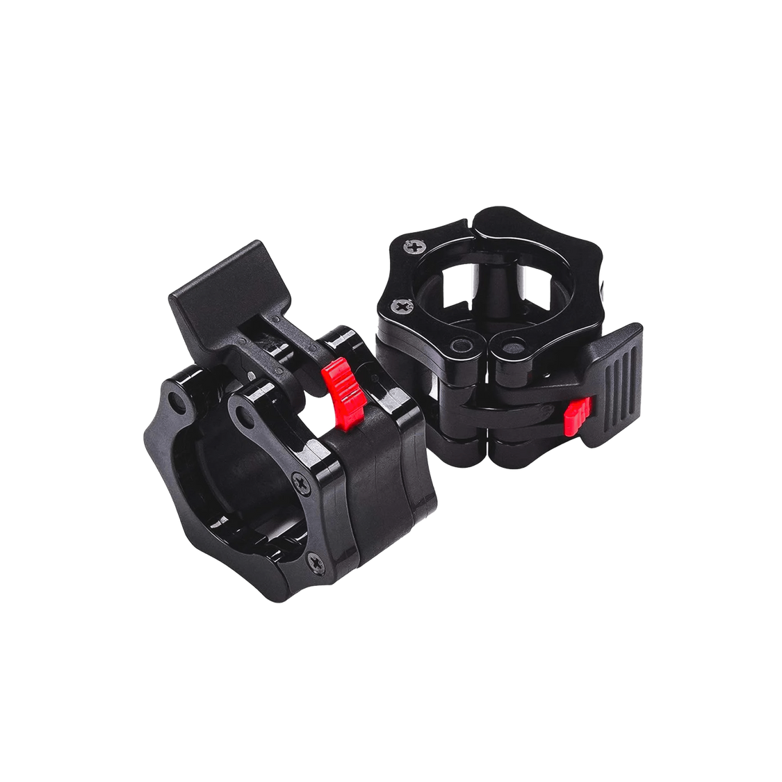 Sold in pairs, these Olympic barbell clamps fit tightly on any 2-inch barbells and lock to stop weights from moving around as you work out. They are made of high-quality nylon and produced through an innovative casting process, making them virtually indestructible.