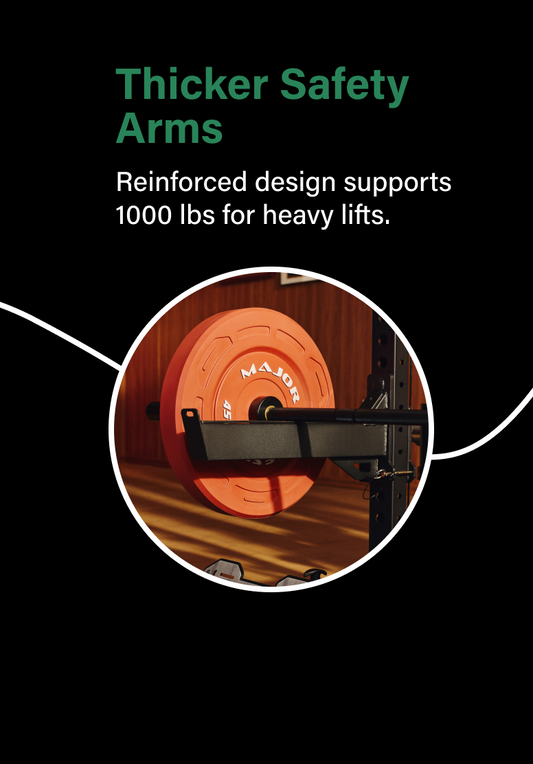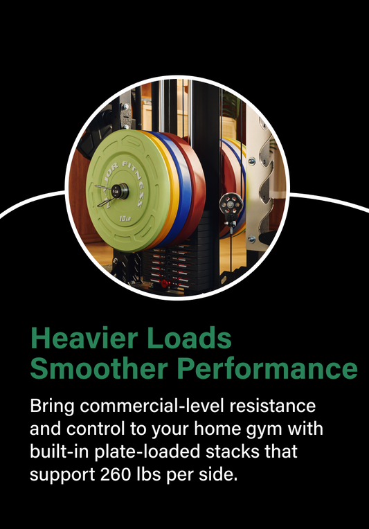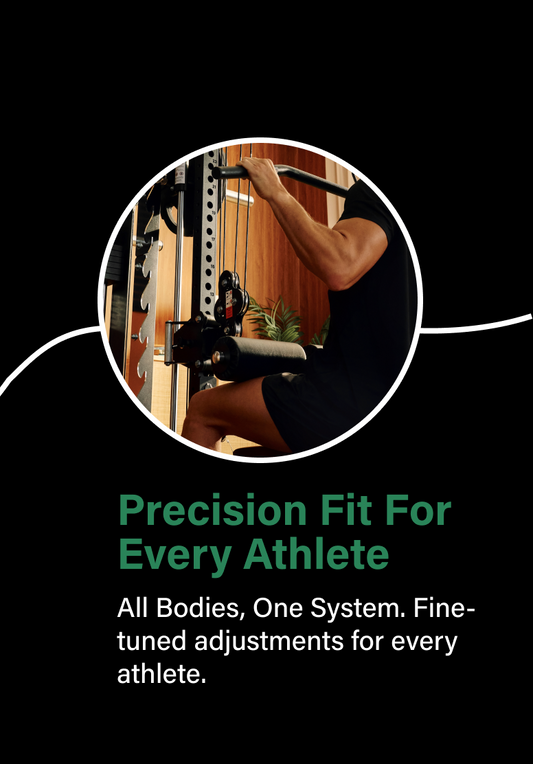 It already comes equipped with our latest heritage series J-Hooks, reinforced spotter arms, leg holder premium, high pulley system, upgraded cable handles, telescoping foot plate and dip bars, while also being compatible with our current machine accessories, such as the rack-mounted leg extension and multifunctional handle bar.