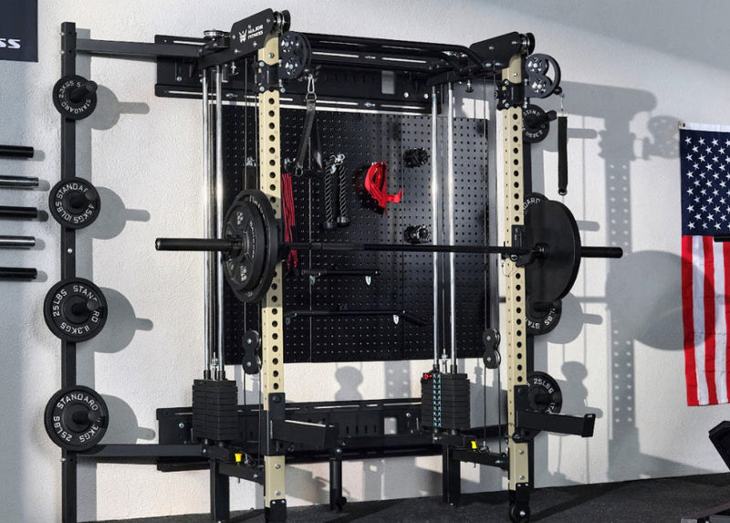 Our 5-in-1 system combines the smith machine, power rack, and cable station to deliver complete workout versatility in one premium station.