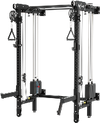 Full-featured power rack capabilities with cable system, pull-up station, and weight stack in a space-saving package.