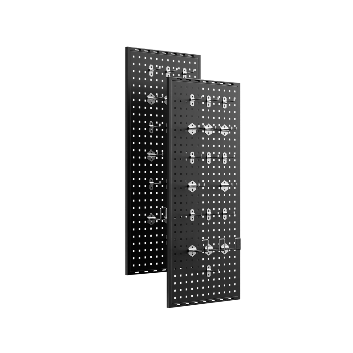 Designed for durability and versatility, each set includes two oversized panels (47.2” × 19.6” per panel) made from galvanized steel, ensuring long-lasting strength and resistance to rust or corrosion. The heavy-gauge construction supports substantial weight, while the included hook set—10 dual-head hooks, 6 extended hooks, and 20 small hooks—lets you customize your storage layout with ease. Perfect for cable attachments, handles, belts, resistance bands, and more.